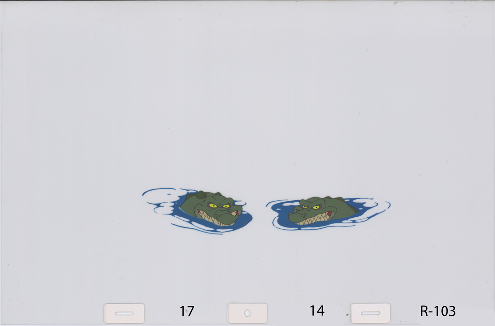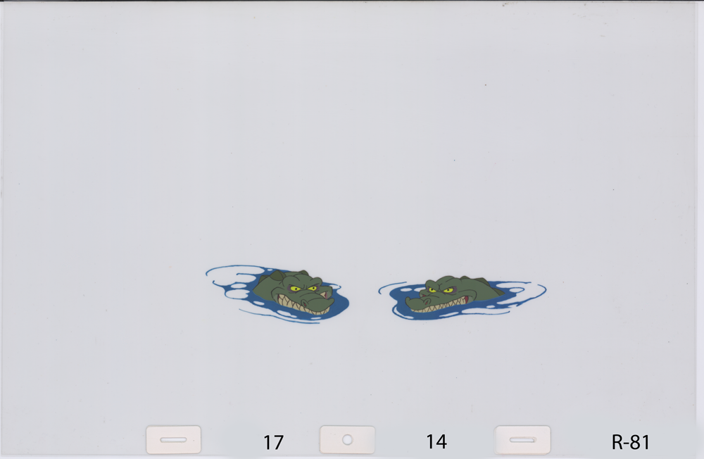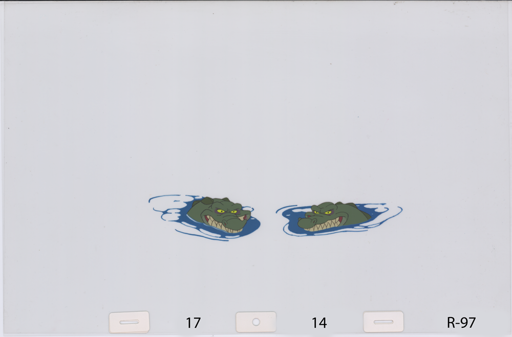 Art Cel Alligators (Sequence 17-14). Original Pencil Art: hand-drawn pencil art from the classic film, The Swan Princess. This is Sequence 17 Scene 14, where the alligators in the moat, stare out hungrily at the animals standing on the bank.