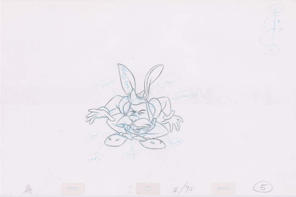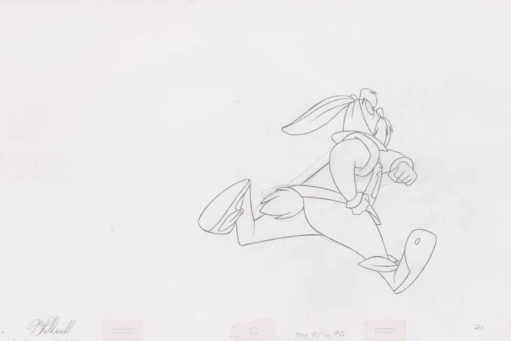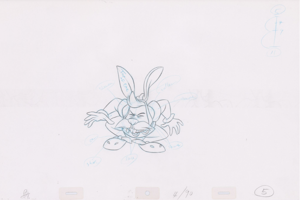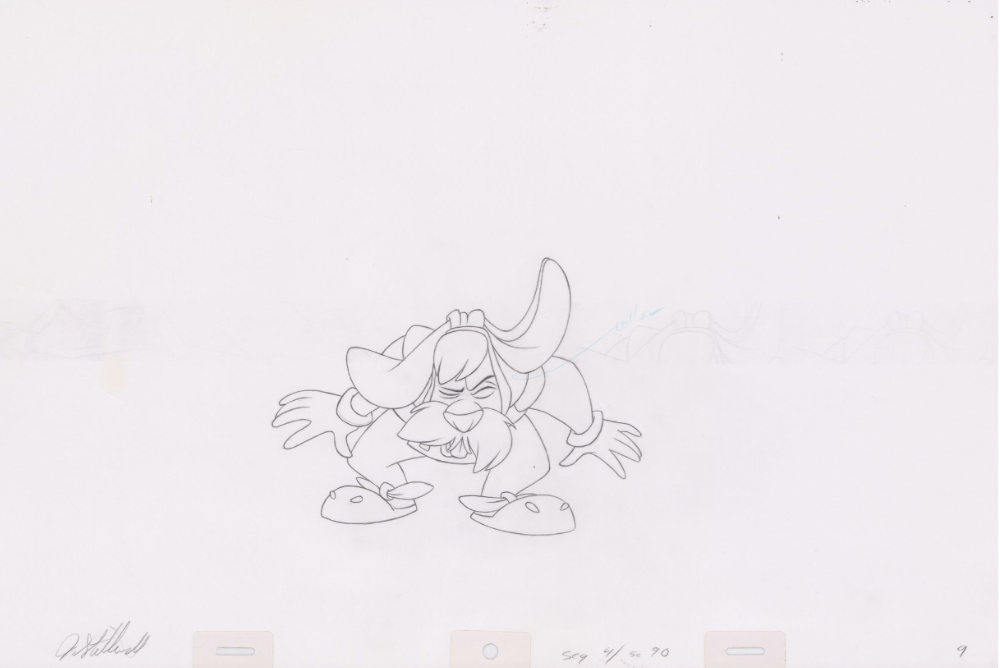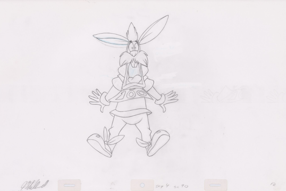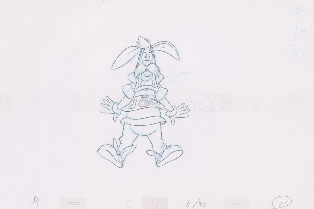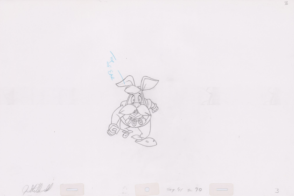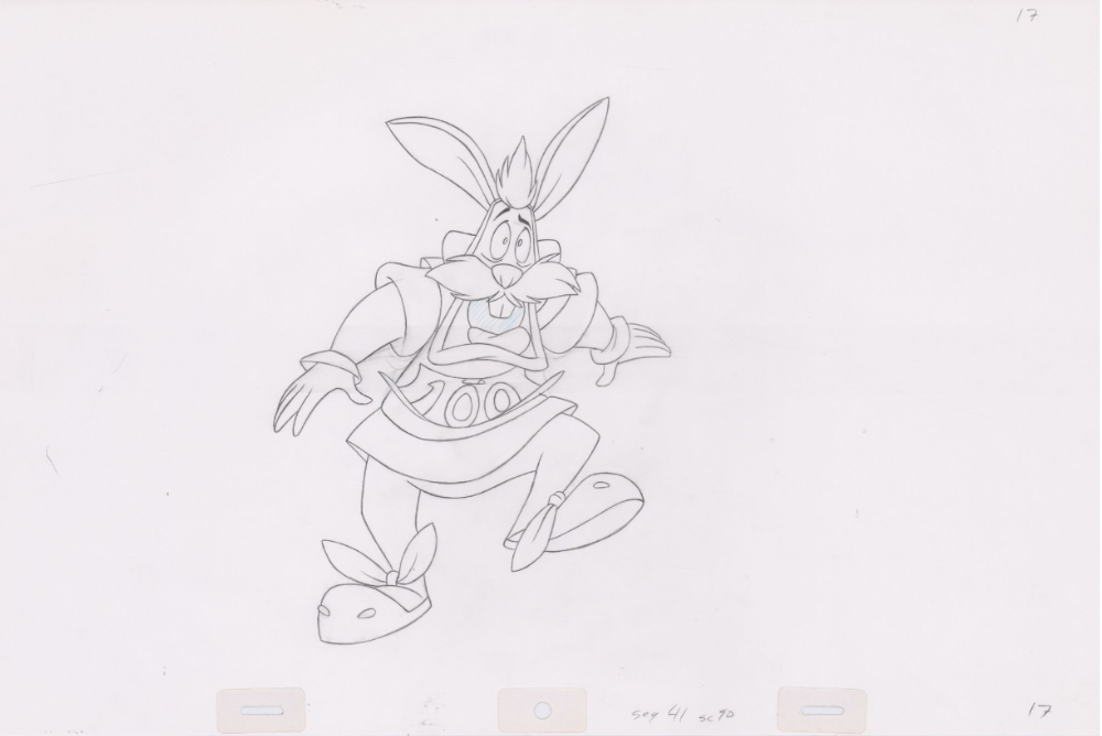 Original Pencil Art: hand-drawn pencil art from the classic film, The Swan Princess. Swan Princess Pencil Art of Westley the white rabbit (Sequence 4-90). Westley runs from painted arrows as Bromley and Derek compete for archery points.