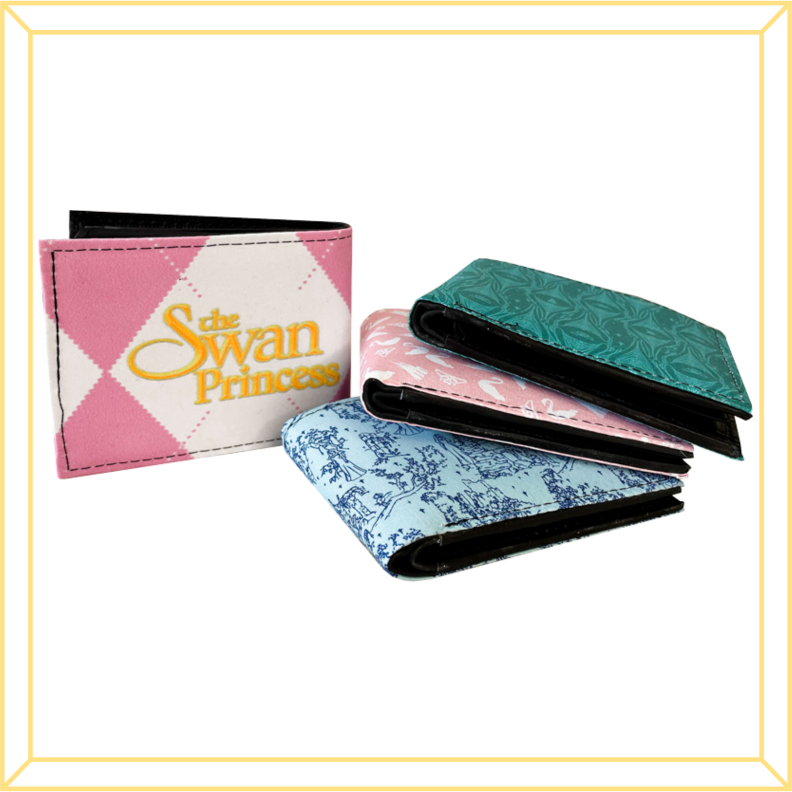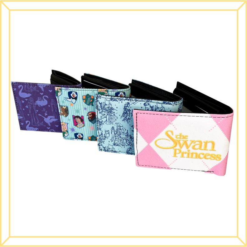 This handmade bifold wallet featuring The Swan Princess themed patterns and/or logo and characters comes in seven adorable prints.